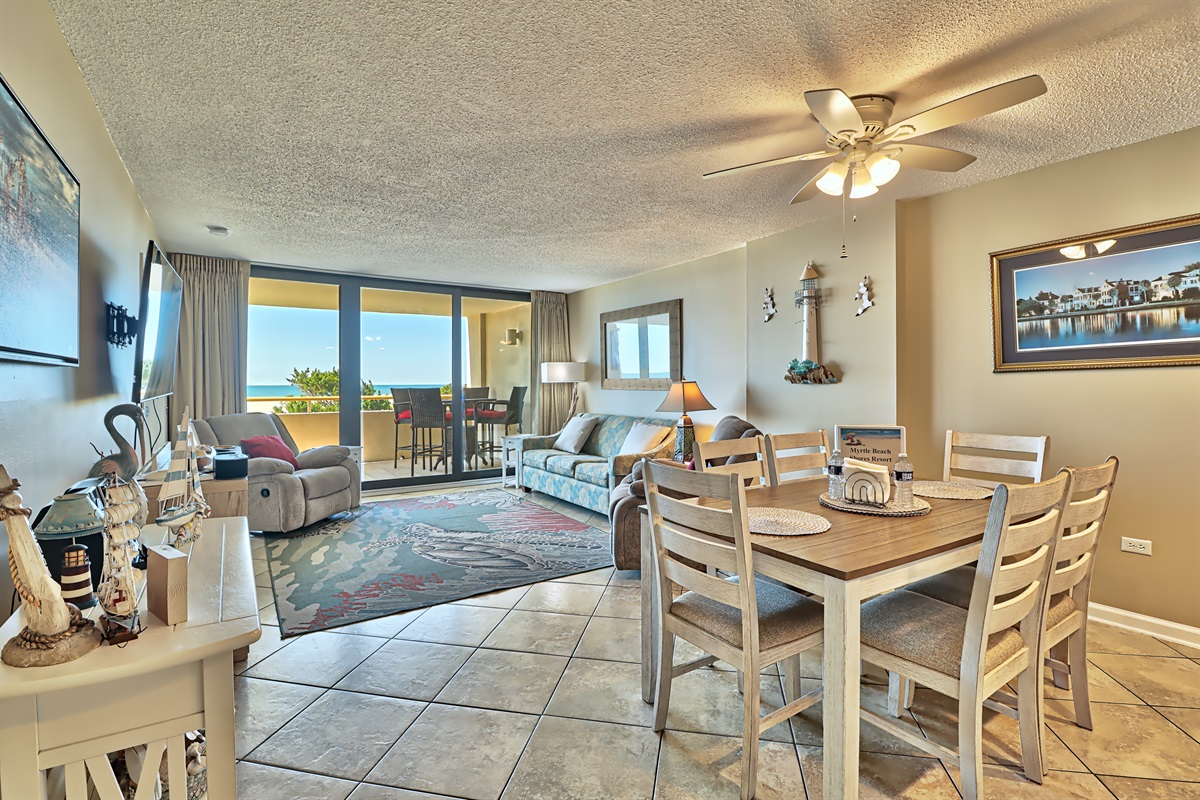 2 Bedrooms • 2 Bathrooms 2 Baths • Sleeps 3-6Our 2nd Home Unit is positioned on the Front, South Corner of the Tower South. From Both Bedrooms and Living Room there is nothing between You and Your View of the Ocean all the way down the Beach. See and Listen to the Relaxing Sound of the Sea Gulls and Ocean from any where in this Home Feeling Condo. This is a Very Unique and Highly Prized Location within this Famous and Family Friendly Resort. Yearly Updates In Our 2nd Home. We Pride Ourselves In Keeping Our Home In Excellent condition. December 2019, Home re-painted and Balcony Tiled :-) :-) :-)